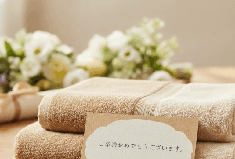 タオルと一緒に添えるカードは、シンプルな構成が最も響きます。