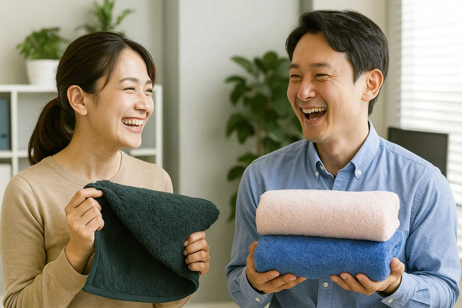 ふんわり軽く、しっかり吸水。社員やご家族が毎日の暮らしで使い続けられる実用性。